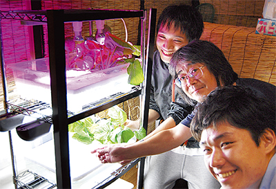 「植物は種類によって成長を促進させる光が異なる。LEDなら光の種類を細かく選べ、効率的に育てることができる」と話すのはメンバーの一人、木村龍典さん。同大大学院の修了生で今春からLEDを利用した植物工場を専門に手掛ける会社に勤めている。
