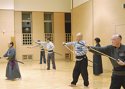 「鞘に収めるときに指を斬ってしまわないように、こうやるんです」――。13日の参加者は8人。真剣な表情で抜刀・納刀の技のほか、基本的な形の演舞を習った。参加者のひとり清水康生さん(65歳)は「時代劇にあこがれて参加した。この機会に精神を鍛えたい」と話した。
