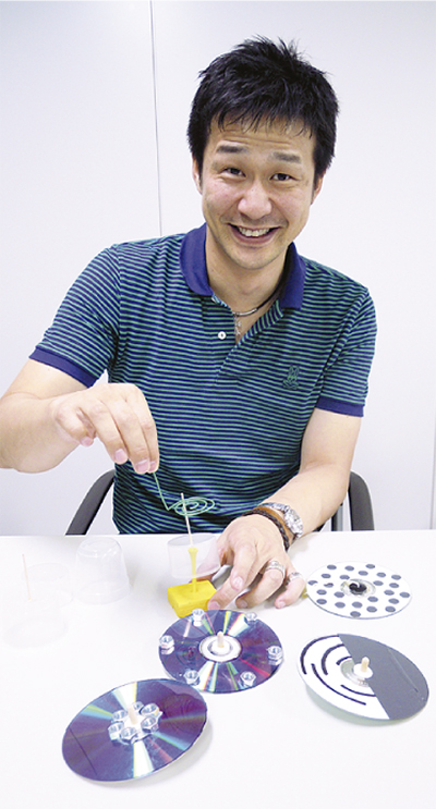身近なものを活用したコマ作りを体験し遊ぶうちに、流体力学などを学んでいく。CDやプラスチック容器などを利用したコマで様々な実験を行う。