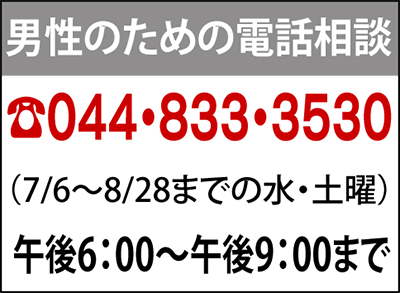 相談は無料だが、通話料は自己負担。「男性のための電話相談」は【電話】044・833・3530