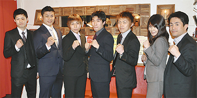 激励会には4月10日の試合に出場する前東洋太平洋女子バンタム級王者の三好喜美佳選手や古橋大輔選手らも参加し、意気込みを語った。