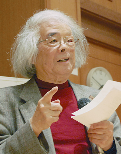 昔話研究家で筑波大学名誉教授の小澤俊夫さんの緊急講演会「秘密保護法を強行採決した日本、外国はどう見ている?」が6日、多摩市民館で行われた。特定秘密保護法を痛烈に批判し、約110人の市民が耳を傾けた。主催は秘密保護法を考える川崎市民の会。