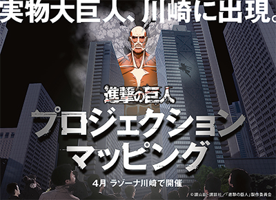 別冊少年マガジンで連載中の人気漫画『進撃の巨人』。同作品の累計3000万部発行を記念したイベントが4月に川崎駅前のラゾーナ川崎で行われる。同作品の編集者で、高津区在住の川窪慎太郎さん(31)がイベントを企画。プロジェクションマッピングという技術で作品に登場する60m級の巨人を出現させる。