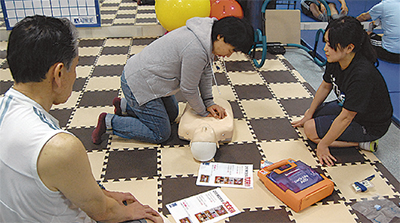 スポーツスパアスリエ生田で20日、1日無料開放イベントが行われ、無料講習の一環でAEDと心肺蘇生法の講習会が行われた。