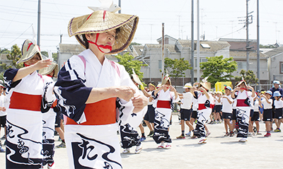 24日の運動会にはメンバー26人が揃いの浴衣と笠を身に着けた姿で登場。出番を待っている間も児童から「多摩川音頭だ」と声を掛けられていた。輪になって踊り始めると、その姿を見ながら児童たちも踊った。 山根会長は「今は情緒のあまりない時代になった。多摩川音頭を通じて地元の高齢者と子どもが触れ合うことで、非行防止などのいい影響もあるはず」と話す。