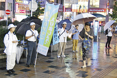 約40人のメンバーが参加。「大人が変われば、子どもも変わる〜大人としての自覚と責任感を大切に〜」とスローガンが書かれたウエットティッシュなどを通行人に配布し、活動をPRした。のぼり旗を掲げ、青少年の健全な育成の協力を呼びかけた。