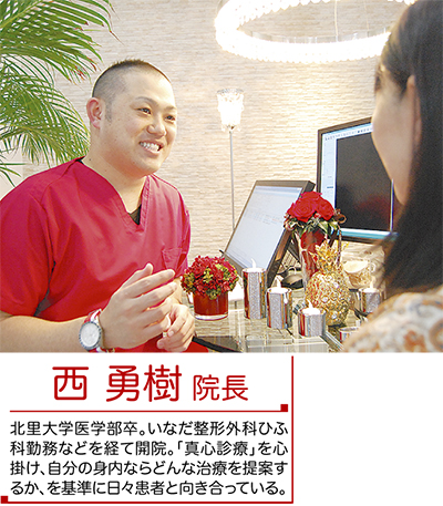 「更年期障害や肝機能障害に用いるプラセンタ注射治療が保険適用できることはあまり知られていません」と話すのは同院の西勇樹院長。