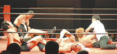 多摩区出身のプロレスラー・田村和宏選手が代表を務めるプロレス団体「ヒートアップ」の試合が16日、麻生区の新百合21ホールで行われた=写真。会場は地元のプロレスファンの熱気に包まれた。