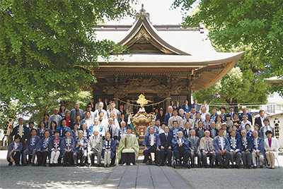 55年ぶりに修復された登戸中町の神輿(みこし)が6日、登戸稲荷社で披露された。式典には登戸中町神輿保存会のメンバーや地元住民ら約100人が集まり、晴れ姿を祝った。