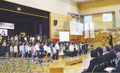 同校の佐藤やよい校長は「地域の強い働きかけでできた学校なので、みなさんに見守られている。さらに地域に開かれた学校にしていきたい」と話していた。また、創立50周年記念事業実行委員会で委員長を務めた町山良行さんは「子どもたちのいきいきとした元気な姿が見られた。とても良い式だった」と話した。