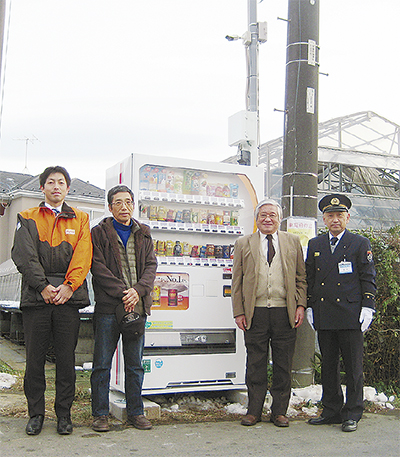 自動販売機の新設に合わせて防火防犯カメラを設置――。こんな仕組みを活用し、多摩区菅地区に防火防犯カメラが21日、設置された。多摩防火協会が大手飲料メーカーのダイドードリンコ株式会社の社会貢献の取り組みを菅町会に紹介し、実現した。