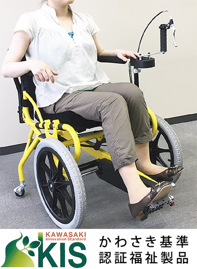 最近の事例を紹介すると、足の不自由な人が自分の足でこぎ、自分の足で動かしているという感覚を取り戻すことができるリハビリ用の車いす「COGY」=写真=や耳が聞こえにくい人をサポートする対話支援システム「comuoon」がある。これまでに166製品を認証した。