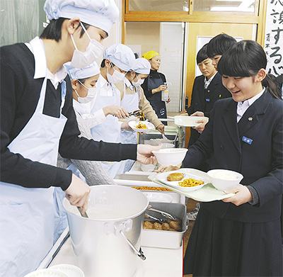 中野島中(高城英一校長/821人)では、昨年11月に給食室を新設。運用前の12月26日に「プレ給食」で120人分を調理。教諭やPTA役員、部活動の生徒らが試食した。高城校長は「温かい食事が喜ばれている。弁当と違い、皆で一緒に同じものを食べるので、会話も弾んでいる」と手応えを話す。