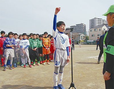 多摩地区内の小学6年生以下で編成されたチームが参加できる「少年サッカーU―12大会」が3月5日、下布田小学校の校庭で行われ、区内の少年サッカーチームが一堂に会した。