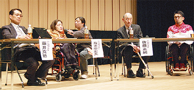 障害者の実体験と今を語り合うフォーラムが23日、多摩市民館大ホールで開催された。主催したのはNPO法人らぽおると社会福祉法人らぽおるの樹(北川千鶴子理事長)。会場には一般人や関係者など約200人が参加し、講演者の話に耳を傾けた。