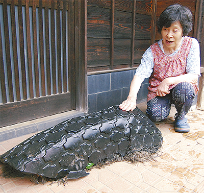 南生田の関光子さん(74)の自宅には、この時のB29のタイヤが親の世代から受け継がれ保存されている。当時、タイヤは複数に切り分けられて各家庭に分配されたといい、「たらい代わりにしたり、裏面の綿糸を針仕事に使ったりしていたと聞いている。形に残っているのはこれだけではないか」と関さん。保管については、「貴重なものなので今後どうするか考えたい」と話す。