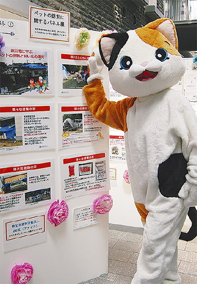 2日に多摩区役所で行われた「どうぶつ愛護フェアinたま区」では、猫の譲渡会などのイベントと同時に、ペットの防災に関する展示も行われた。展示では「備えておくこと」として、迷子対策や排泄物処理法の確認、犬猫以外の動物の餌の用意などが紹介された。