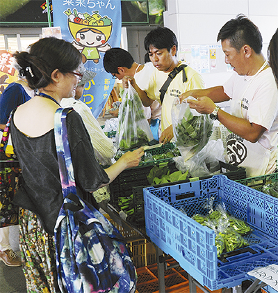 青年農業者らによる市内産野菜の販売イベント「登戸駅マルシェ」が8月29日、JR南武線の同駅前で開催された。主催はセレサ川崎農業協同組合や市、市内直売団体等が加盟する「かわさき地産地消推進協議会」。