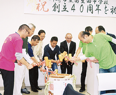 川崎市立南生田中学校(網屋直昭校長)で10月14日、創立40周年を記念した催しが行われた。毎年恒例の地域開放イベント「第34回ふれあい広場」の開催に合わせ、講演会やステージ発表、PTAによる模擬店などが行われた後、記念式典へ。「創立40周年記念の会」と銘打った生徒らが企画・運営する手作りの会で、歴代のPTAや地域の関係者らが参列した。