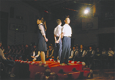 吹奏楽部の演奏で幕を開けると、全校生徒が『かわさきのねいろ』『いつまでも』を合唱し、歌声を響かせた。「浦島太郎」と名付けられたプログラムでは、創立当時からの制服と体操服の変遷を生徒がファッションショーで披露。「最初は青いジャージだった」「胸の部分に横のラインがあった」などクイズ形式で紹介し、盛り上がりを見せた。
