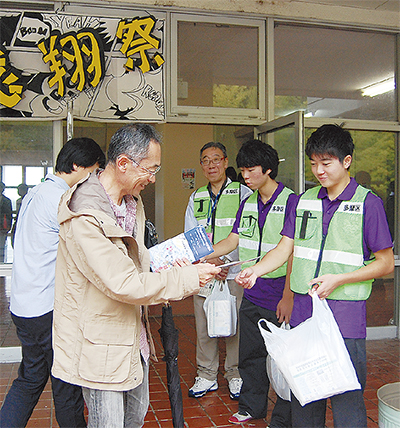 県立菅高校(菅馬場)の文化祭「飛翔祭」で21日、交通安全キャンペーンが行われた。主催は多摩区と区交通安全対策協議会、多摩警察署。自転車シミュレータなどの交通安全等機器の体験コーナーが設けられたほか、関係者と同校生徒が啓発物を配布し、来場者に呼びかけた。