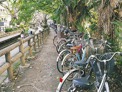 桜の名所としても知られる宿河原駅南側の二ヶ領用水に架かる橋周辺には、転倒防止柵付きの300台分の無料駐輪場が設けられているが、放置自転車が後を絶たない。市の2016年度実態調査によると、同駅周辺の駐輪場利用台数434台に対し、放置台数は400台とほぼ同数に上る。市建設緑政局は「新たに禁止区域に指定するには、放置自転車の受け皿の確保が必要」としている。