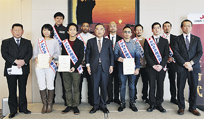 川崎商工会議所(山田長満会頭)は2月5日、川崎市の産業や観光などの魅力を市内外にアピールする「第9回かわさき産業親善大使」の任命式を行った。