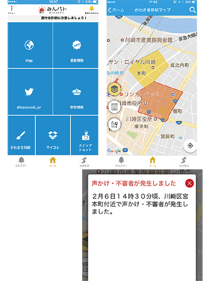 川崎市が市内で発生した犯罪、不審者情報などを知らせる防犯アプリ「みんパト」の配信を先月23日から始めた。