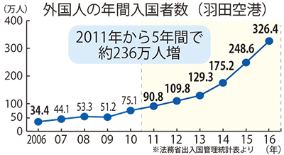 住宅の一部やマンションの空室などを活用し、有料で旅行者の宿泊を受け入れる「民泊」。増加する外国人旅行客の新たな受け皿として活用を進めるため、6月の「住宅宿泊事業法」施行で設置区域の制限が緩和される。事前に届け出れば、建築基準法によりホテルや旅館などが建てられない「住居専用地域」での民泊開設が可能になる。住宅街の個人宅に外国人旅行客が宿泊するケースも考えられ、騒音やゴミ出しなどの衛生面の問題、近隣住民とのトラブル対応が課題とされる。