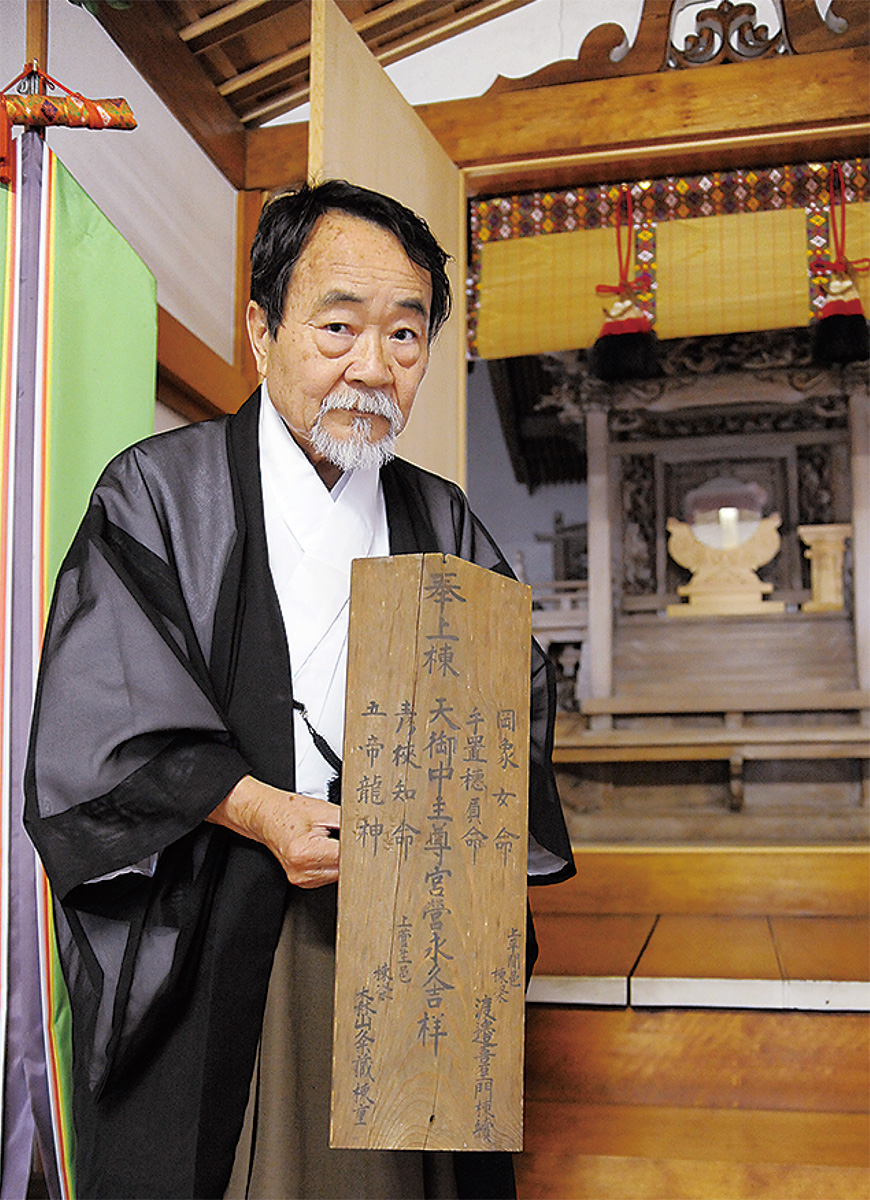 稲荷のほか天神、水神、防火にあたる「秋葉」など地域の神々をまつる中野島の同神社で、金子さんが宮司を引き継いだのは14年ほど前。貴重な文化財が残されていることは、当時に総代から聞いていたという。竜をあしらった細かい彫刻のある本殿は、建築記録にあたる「棟札」に江戸時代の元号「天保」6年(1835年)と記されている。本殿について、金子さんは「日光東照宮の建設に携わった職人の孫弟子が作ったものではないか」と推測する。