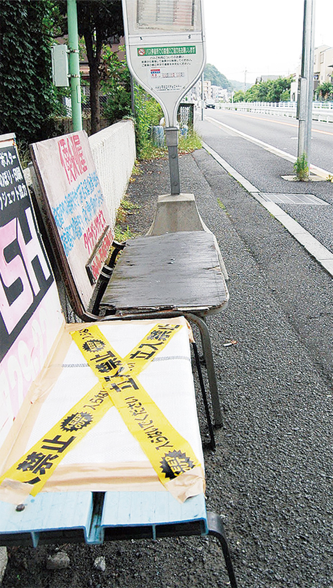 多摩区内の緑道やバス停のベンチなどで今月7日から14日、民族を差別する落書きが相次いで発見された。市内では6日から、高津区や中原区を中心に同様の被害が29カ所50件見つかっている(18日時点)。