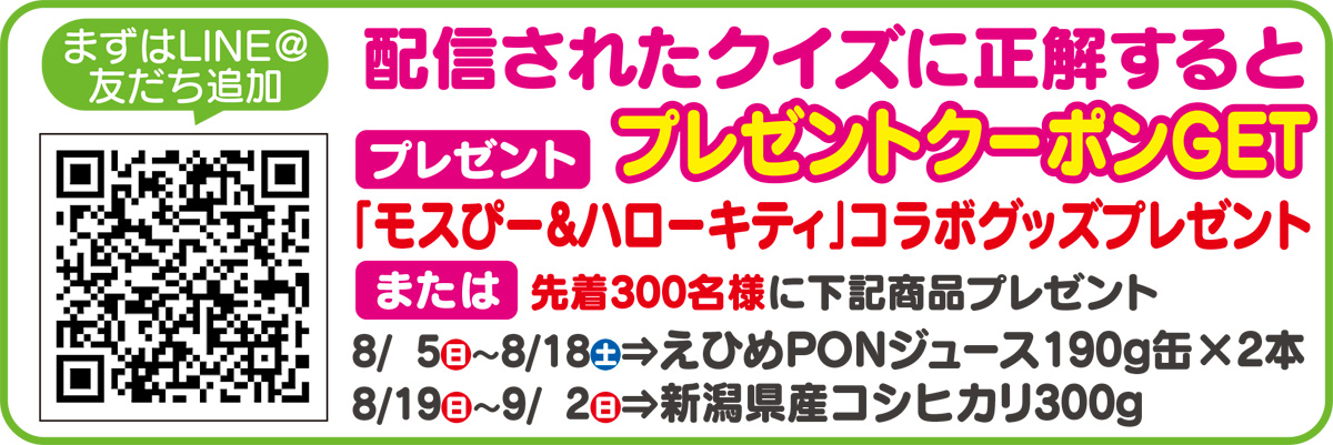 そんなセレサモスの宮前店と麻生店では、9月2日までハローキティとの夏休みコラボ企画を開催中だ。スマホの通話アプリ「LINE」でセレサモスのアカウントを友だち追加するとクイズを配信。正解で送られるクーポンを各店に持参するとオリジナルグッズか、えひめPONジュース、新潟県産コシヒカリが先着でもらえるお得な企画。ぜひこの機会をお見逃しなく。