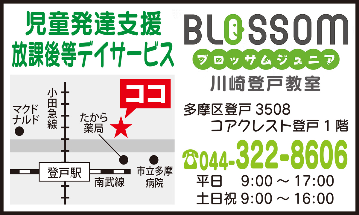 川崎市指定の児童発達支援・放課後等デイサービス「ブロッサムジュニア川崎登戸教室」が先月、登戸駅多摩川口徒歩2分にオープンした。利用者一人ひとりに寄り添い、子どもも保護者も安心して過ごせる場として地域に根差した教室を目指している。
