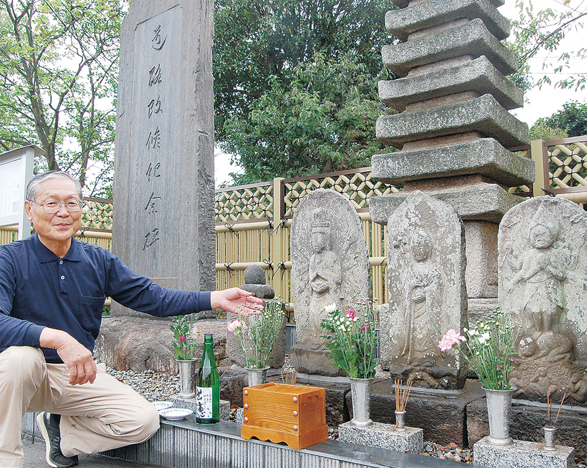 今回、元々あった場所からの撤去が必要となり、本家である松本さん宅へ移設。おし沼地区を通る切通しの道路改修記念碑(1936年建立)も同じ場所から移設した。「いつも彼岸やお盆にお参りしていた。今までうずもれていたので、立派になって良かった」と近隣に住む70代の女性。松本さんは「ここに来る子どもたちにも見てもらえたらうれしい」と話していた。