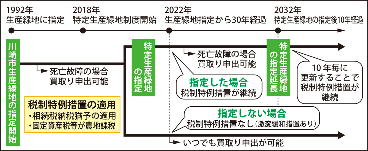 多くの農地が生産緑地の指定解除を迎え、宅地への転用などが懸念される「2022年問題」。生産緑地では税の優遇措置が認められる代わりに、30年間の営農義務や厳しい建築規制が求められてきました。急激な生産緑地解除への対策として国の法整備が進む中で、川崎市も新たな取り組みが求められています。