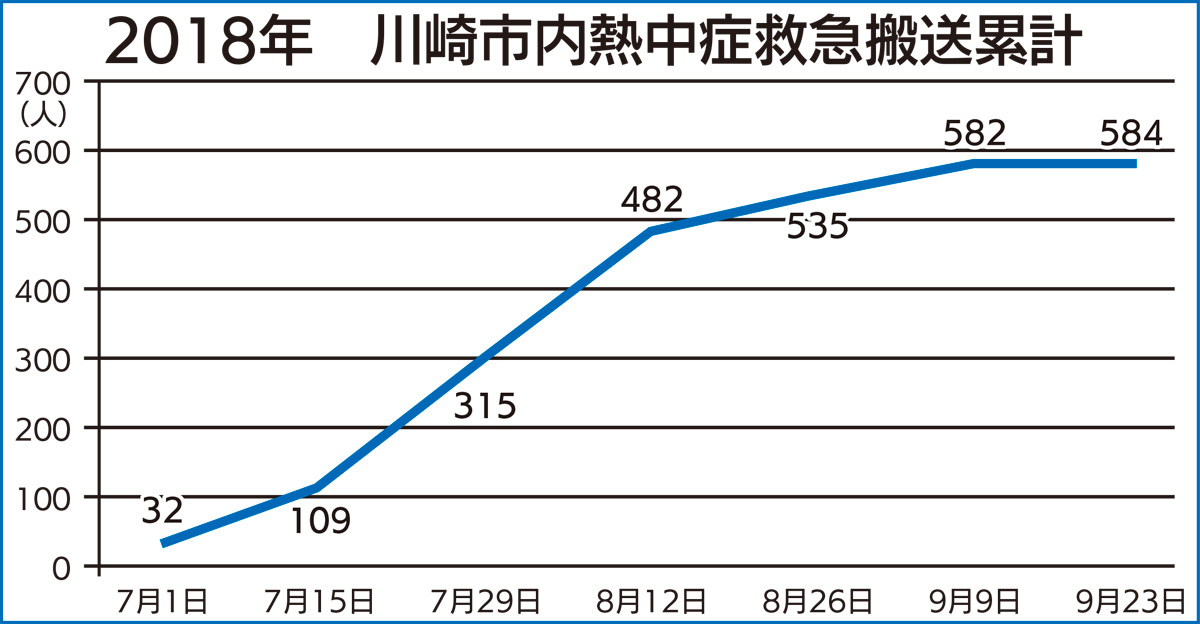 市内の熱中症による救急搬送人数は584人(5月〜9月)で、昨年のほぼ2倍です。7月21には、1日の救急件数が過去最高の310件に上ったといいます。