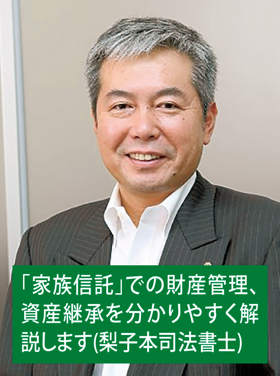 ■家族信託による相続対策セミナー…8月24日(土)午前10時〜午前11時45分、会場・多摩市民館。詳細、申込は梨子本綜合法務事務所(【電話】044・952・9550 平日午前9時〜午後6時)へ。【URL】www.nashimoto-souzoku.com