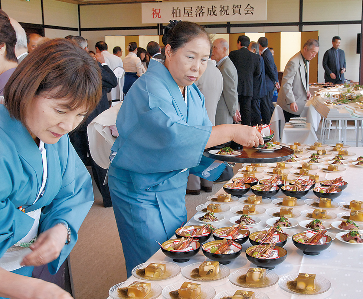 オープンに先立ち、新店舗では8月31日と9月1日の2日間にわたり、3部制で落成記念祝賀会が開かれた。福田紀彦市長や荻原圭一区長、地元選出議員、地元企業や町会、各団体のリーダーら延べ約200人が参席。あいさつで小出将希専務は「これからも進化していく」と強調。小出善茂社長は事業継承をキーワードに「『川崎の奥座敷』を目指して精進する。これからも柏屋を見守ってほしい」と力強く語った。