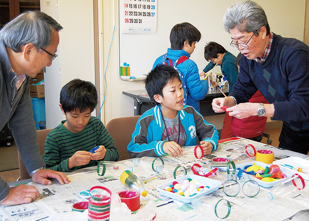 中野島小学校の「遊びと学びの寺子屋」の一つとして、寺子屋を運営するNPO法人かわさき創造プロジェクトが主催。市内北部を中心とした4つの「おやじの会」のメンバーが遊び方や作り方を教えてくれる。