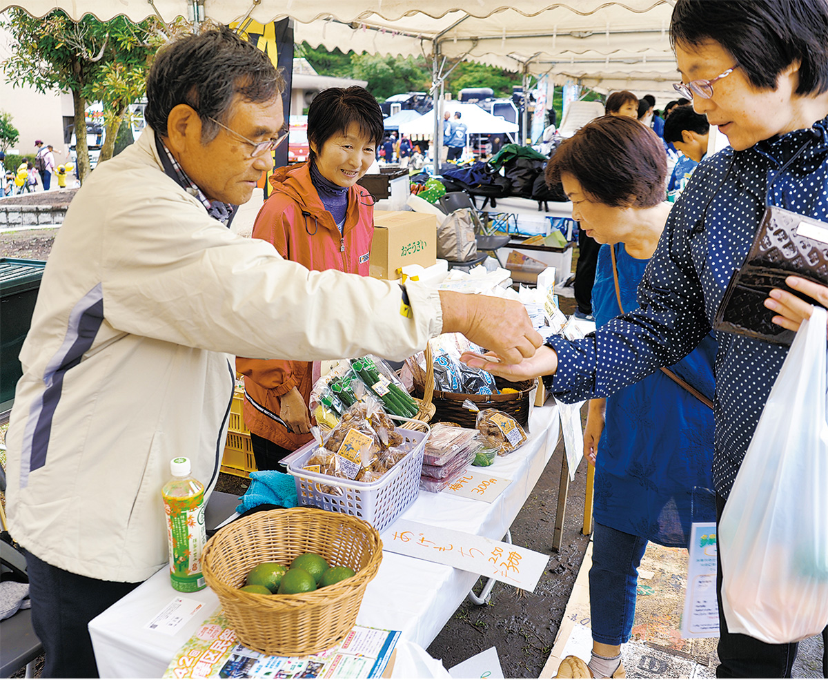 多摩区の交流都市で、2006年の7町村合併により誕生した南房総市(千葉県)が10月19日、今年も多摩区民祭にブースを出店。地場産の野菜や果物、魚介類の加工品などを販売した。