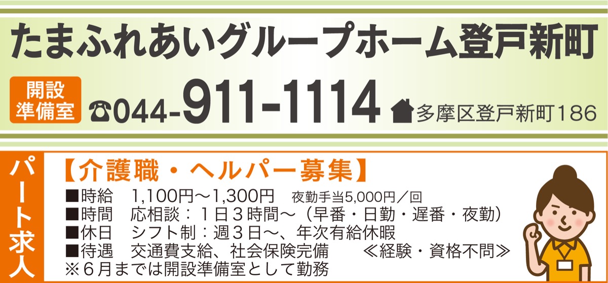 在宅医療クリニックや訪問看護などを展開するたまふれあいグループ(医療法人メディカルクラスタ/鈴木忠代表)が今年6月、登戸新町に新たなグループホームを開く。2年前、開所前に定員になった「たまふれあいの家」(枡形)に続いて、医療連携による安心の暮らしを提供。このほど、事前予約(費用不要)の受付を開始した。
