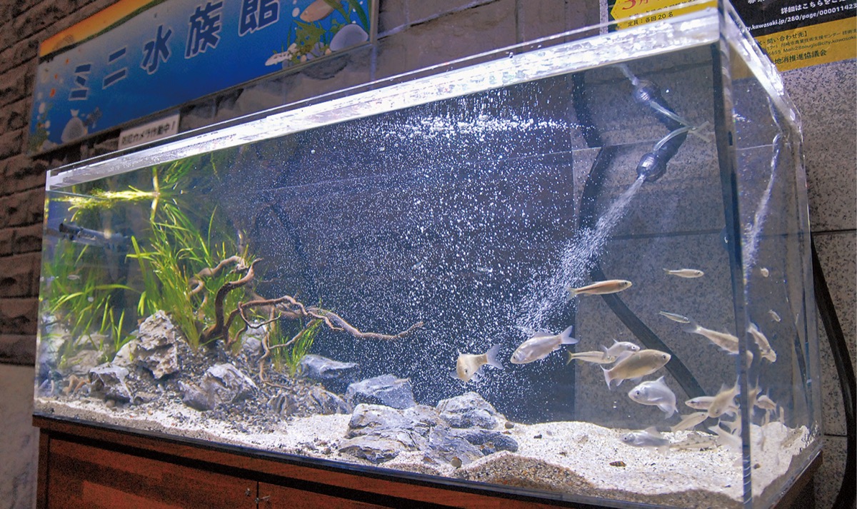 これらの水槽を手掛けたのは、熱帯魚や水草を取り扱う地元企業のリキジャパン(布田)。同社の菅原茂さんは「皆さんに楽しんでもらえるようセッティングした。こんな魚も住んでいるんだと、子どもたちに分かってもらえたら」と思いを話していた。