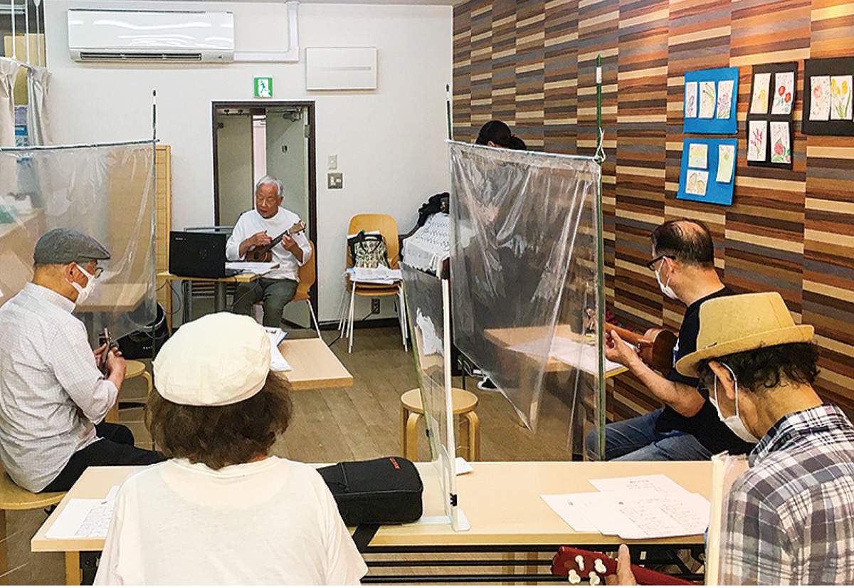 再開にあたってはオンラインを活用した取り組みも。6月5日のウクレレ講座や8日の笑いヨガ講座では、来店に加え、ウェブ会議ツールからの参加を併用した。自宅から笑いヨガ講座に参加した男性(86)は「集まってやるよりは味気ないけれど、家でも大声を出して楽しめた」と話す。同カフェを運営する塩沢和美さんは「いろいろなやり方を試しながら、オンラインでもつながれる状況を整えていきたい」と話している。