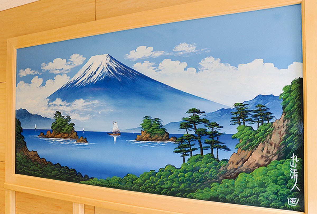 銭湯の背景画を描いて60年以上、作品数は1万枚を超えるという丸山さん。銭湯のほか企業や学校、公共施設など全国のあらゆる場所で実演イベントや企画展を重ねてきたが、保育園で描いたのは今回が初めて。「日本一の富士山は誰でも知っている。ここで歌でも歌ってくれたら」と丸山さんは、ふとほほ笑む。松久保陽子園長は「丸山先生が手を入れるたびに、絵が浮き出てくるのに感動した。ぜひ多くの方々にこの絵を見に来てほしい」と喜びを表す。