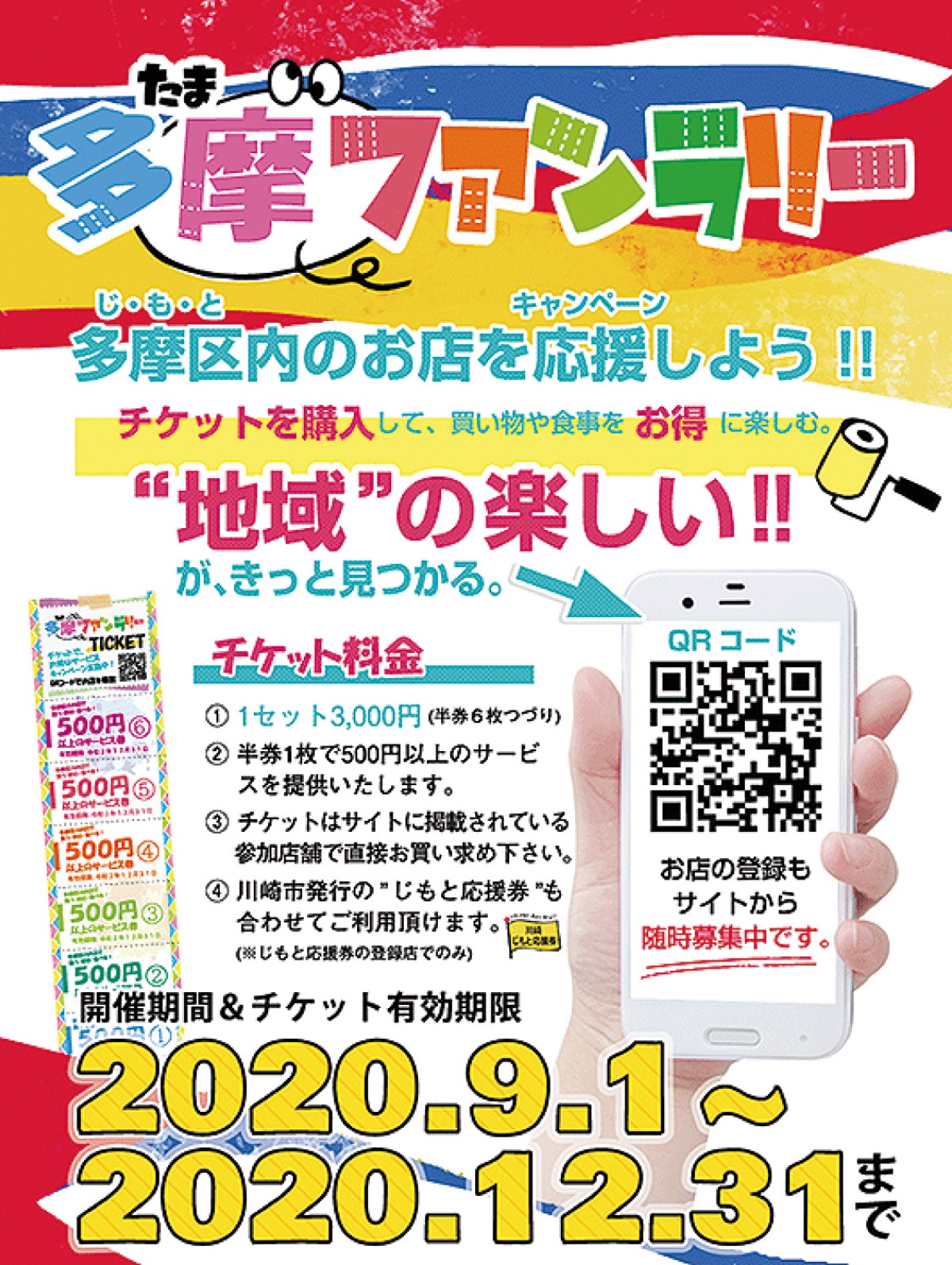 この試みは、コロナ禍により営業面でさまざまな打撃を受けた区内商店を支援しようと、商店主ら有志により発案。実行委員会は「多くのお店に参加してもらい、多摩区を盛り上げたい」としている。