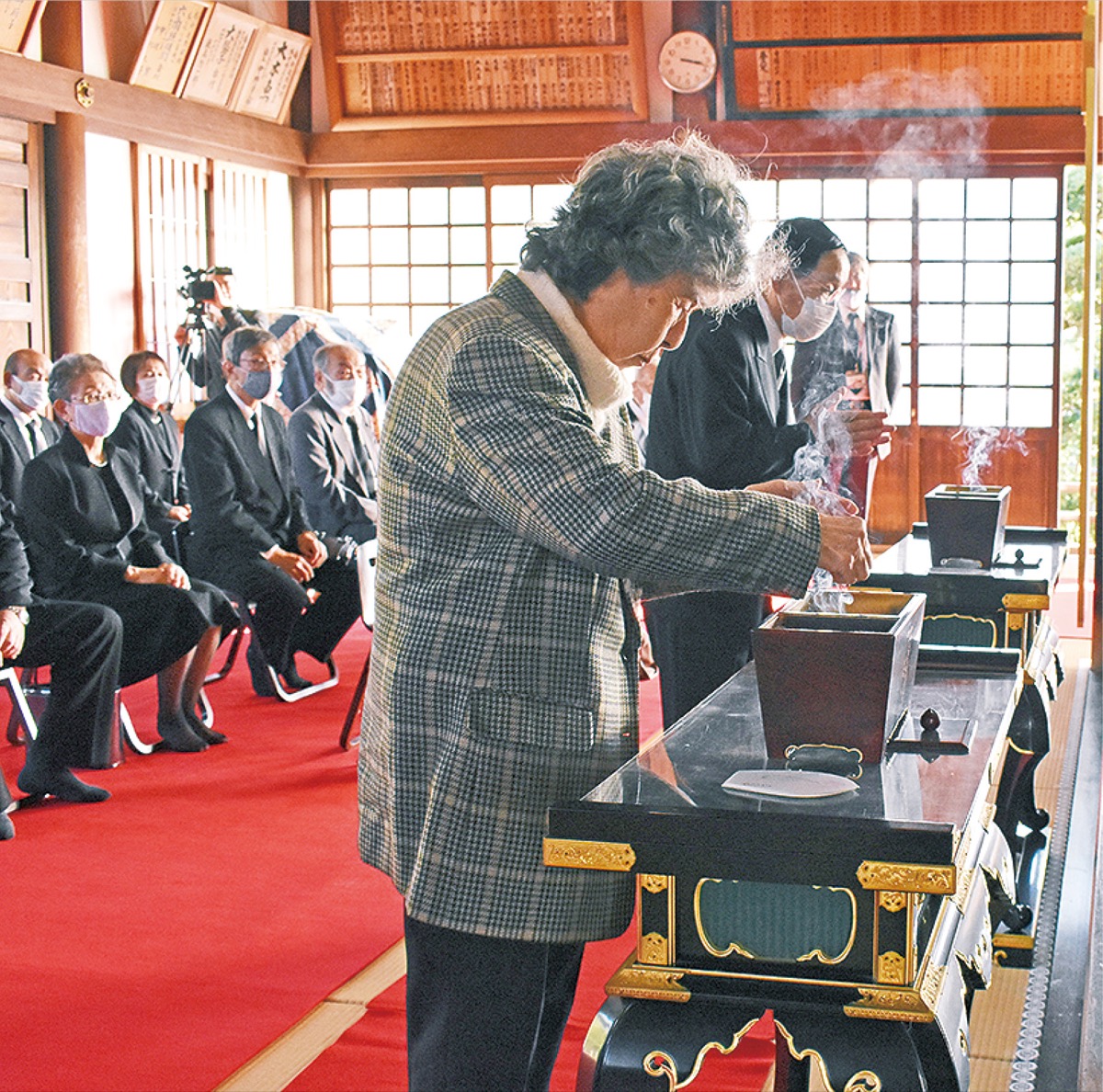 市内7区の戦没者遺族会でつくる川崎市遺族連合会が10月31日、中原区の西明寺で慰霊法要を行った。例年、川崎市総合福祉センター(中原区)で同時開催する「川崎市戦没者追悼式」は中止されたが、平和への祈りを絶やさぬよう慰霊式は会場を移し、規模縮小で実現した。
