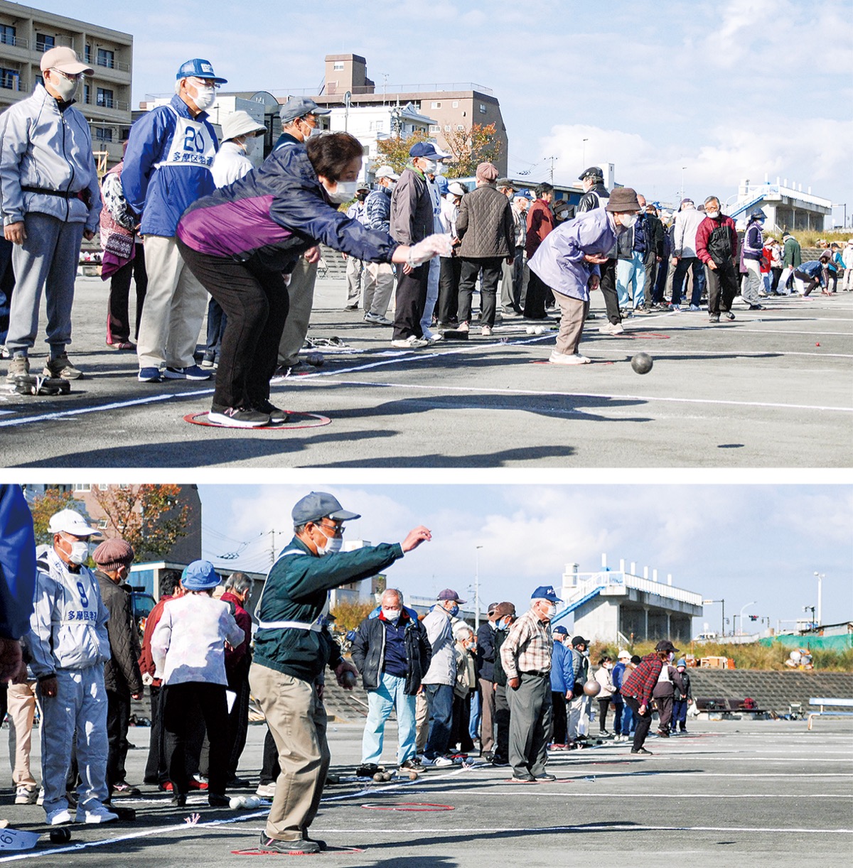 行事中止が続いていた区老連で、スポーツ大会は今年度初。体育部長の根本政夫副会長は「お久しぶりです。密を避けて自己管理を」と参加者に呼びかけた。同大会運営委員長の牟田恒雄さんは「一旦中止にしていたけれど、あまりに中止が多かったので開催を決めた」と語っていた。