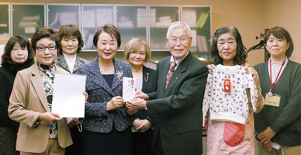 この活動は10年以上前から続いている。今回は朝山会長や広報福祉委員長の小俣多栄子さんら5人が、同会が運営する総合福祉施設しゃんぐりら(幸区)を訪れ、冨田三郎常務理事に届けた。