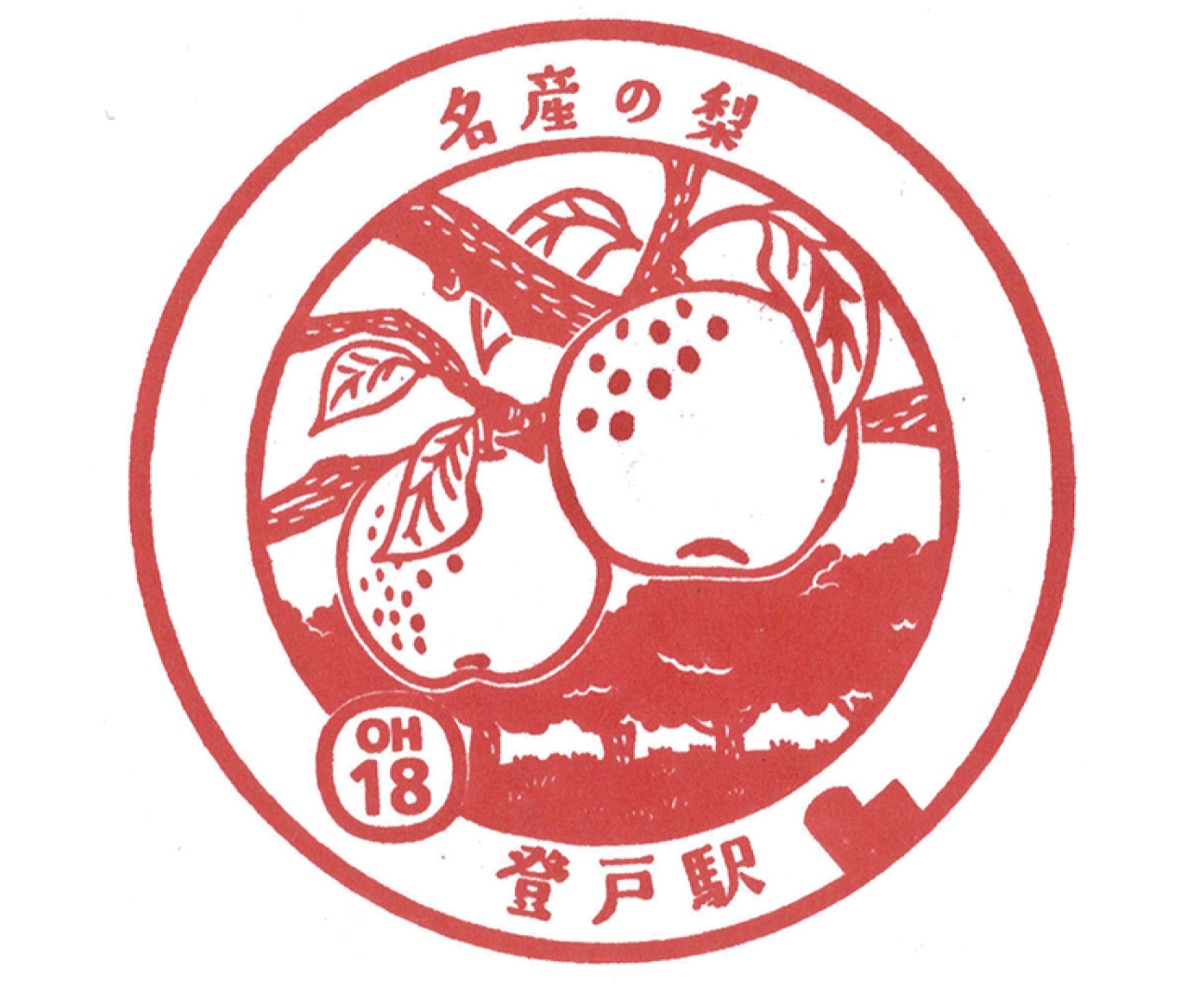 登戸駅のスタンプには「名産の梨」というフレーズと共に、ナシの実と農園が描かれている。高橋英司駅長は「各駅のスタンプには、地域ごとの名産品などいろいろなデザインがある。普段行かない駅も楽しみながら回遊して、新たな発見をしてもらえたら」と思いを話す。