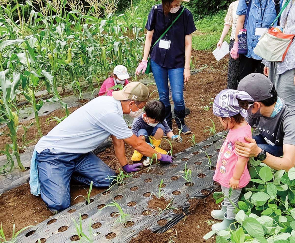 学生15人が運営する中、家族連れなど23人が参加。安西さんは品種や生育期間の違いといった知識を、クイズを交えながら説明。苗の間引きや肥料の葉面散布等についても、作業と同時に解説した。参加者は安西農園で収穫したトウモロコシの料理も楽しみ、「日頃経験できない貴重な時間だった」「毎日新鮮な野菜を食べられることに感謝」と振り返った。